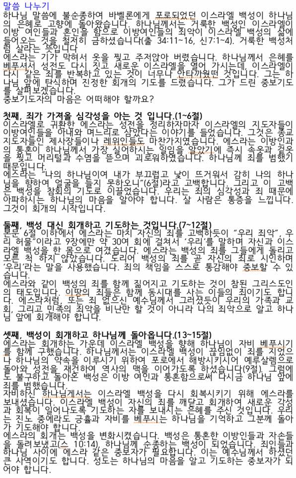 - [성경본문] 에스라9:1-15 개역개정