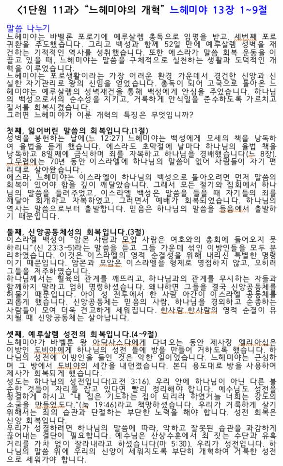 1. 그 날 모세의 책을 낭독하여 백성에게 들렸는데 그 책에 기록하기를 암몬 사람과 모압 사람은 영원히 하나님의 총회에 들어오지