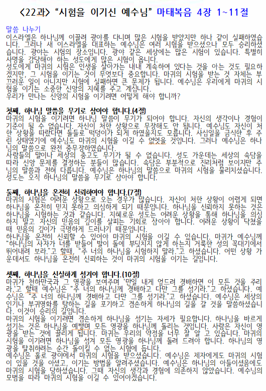 - [성경본문] 마태복음4:1-11 개역개정