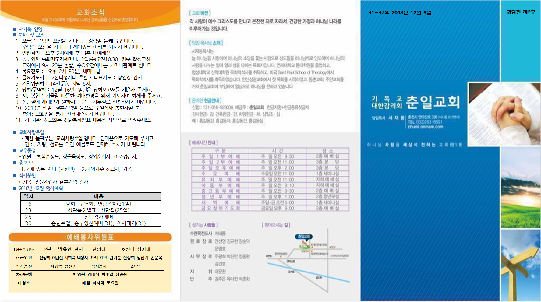 2018년 12월 9일 교회소식